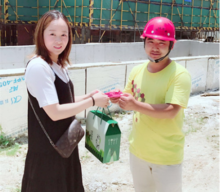 粽子飄香傳四方,思念的心兒在心房。6月15日端午節(jié)前夕,博弘建設(shè)嘉興分公司總經(jīng)理衛(wèi)揚勇、綜合管理部經(jīng)理陸婷一行前往各項目部開展端午節(jié)慰問及高溫送清涼的活動,為節(jié)假日仍奮戰(zhàn)在一線的同事們送去公司的節(jié)日關(guān)懷及慰問。