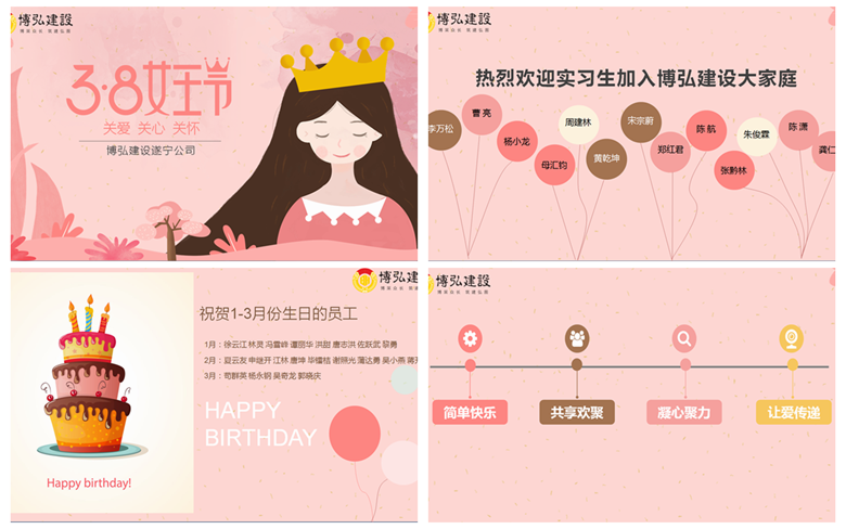 三月,乍暖還寒中,陽光一天天明媚起來,隨處彌漫著濃濃的春意,在這生機(jī)盎然的時(shí)節(jié)里,三·八女神節(jié)如約而至,為感謝大家的的辛勤付出,共慶節(jié)日,博弘建設(shè)遂寧公司開展了主題為“簡單快樂,共享歡聚,凝心聚力,讓愛傳遞”的全員歡聚活動(dòng)。本次活動(dòng)主要圍繞著“三八女神節(jié)”、“實(shí)習(xí)生迎新會(huì)”、“第一季度生日會(huì)”三大主題展開,各個(gè)環(huán)節(jié)都給...